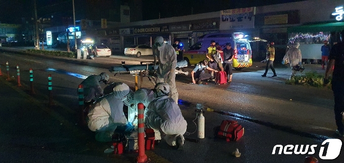| 2020 대한민국 종단 537㎞ 울트라마라톤 대회 과정에 발생한 음주 사고 현장 모습.(경기도소방재난본부 제공)© 뉴스1 |