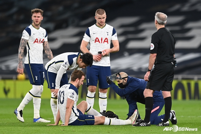 | 해리 케인(가운데)이 치료를 받고 있는 모습. /AFPBBNews=뉴스1 |