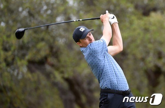| 조던 스피스가 5일(한국시간) PGA투어 발레로 텍사스 오픈 최종 라운드에서 샷을 날리고 있다. © AFP=뉴스1 |