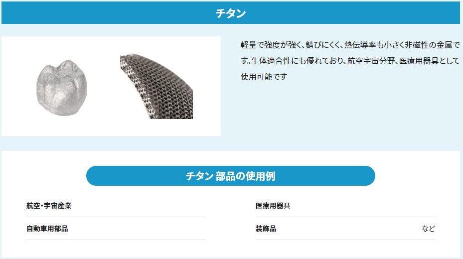 アルミ、ステンレス、チタンの詳細については以下URLをご参照ください。