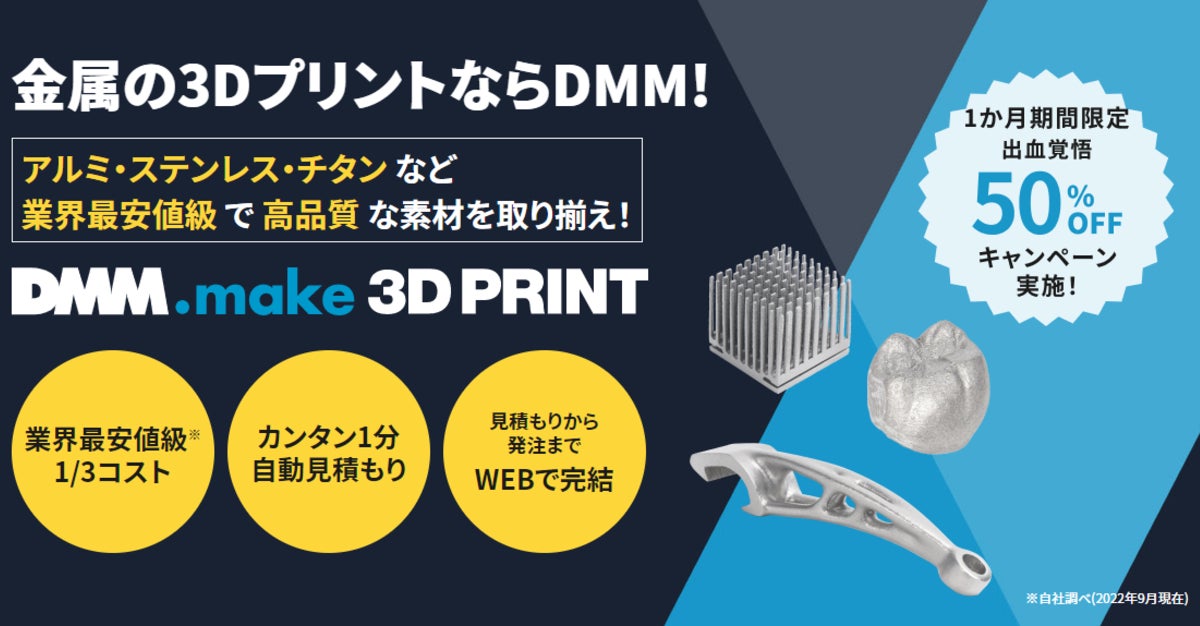 0 Response to "【DMM.make 3Dプリント】アルミ・ステンレス・チタンの受託造形の半額キャンペーンを実施 - PR TIMES"