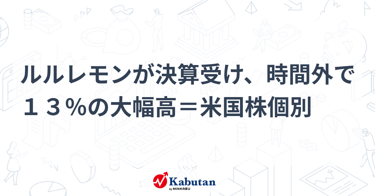 ヨガウエアのルルレモン・アスレティカ<LULU>が引け後に2-4月期決算(第1四半期)を発表し、既存店売上高が予想を上回ったほか、売上高、1株利益とも予想を上回った。ガイダンスも公表し、通期の売上高、1株利益とも見通しを上方修正した。航空運賃の低下と中国での販売加速が寄与した。