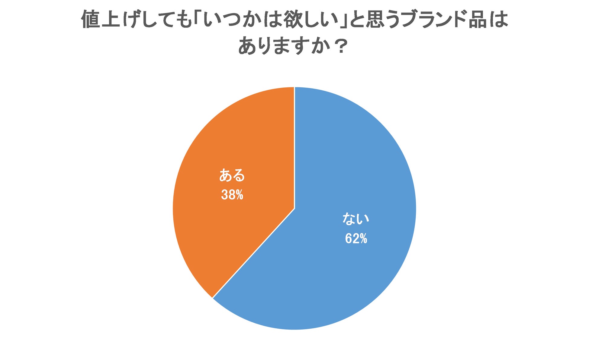 「値上げしても『いつかは欲しい』と思うブランド品はありますか?」という質問では、「ない」が62%を占め、「ある」と回答した人は38%にとどまりました。