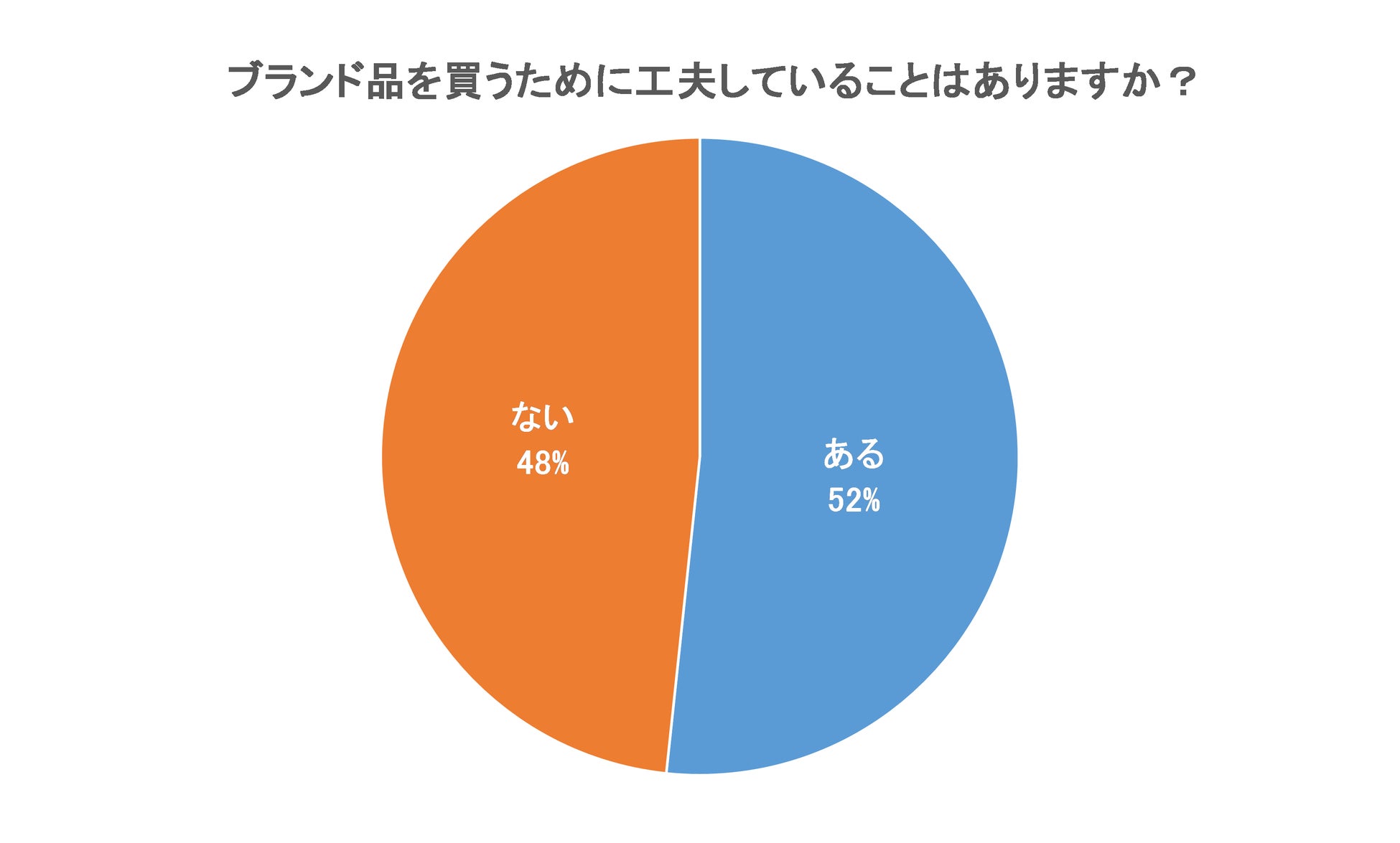 「ブランド品を買うために工夫していることはありますか? 」という質問では、「ある」が52%、「ない」が48%で拮抗する結果になりました。