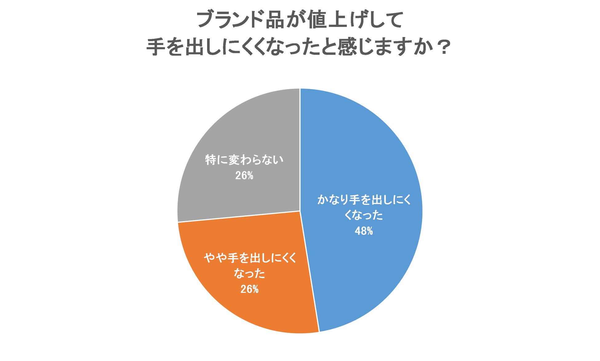 「ブランド品が値上げして手を出しにくくなったと感じますか?」という質問では、「かなり手を出しにくくなった」が48%、「やや手を出しにくくなった」が26%で、全体の74%が「手を出しにくくなった」と回答する結果になりました。