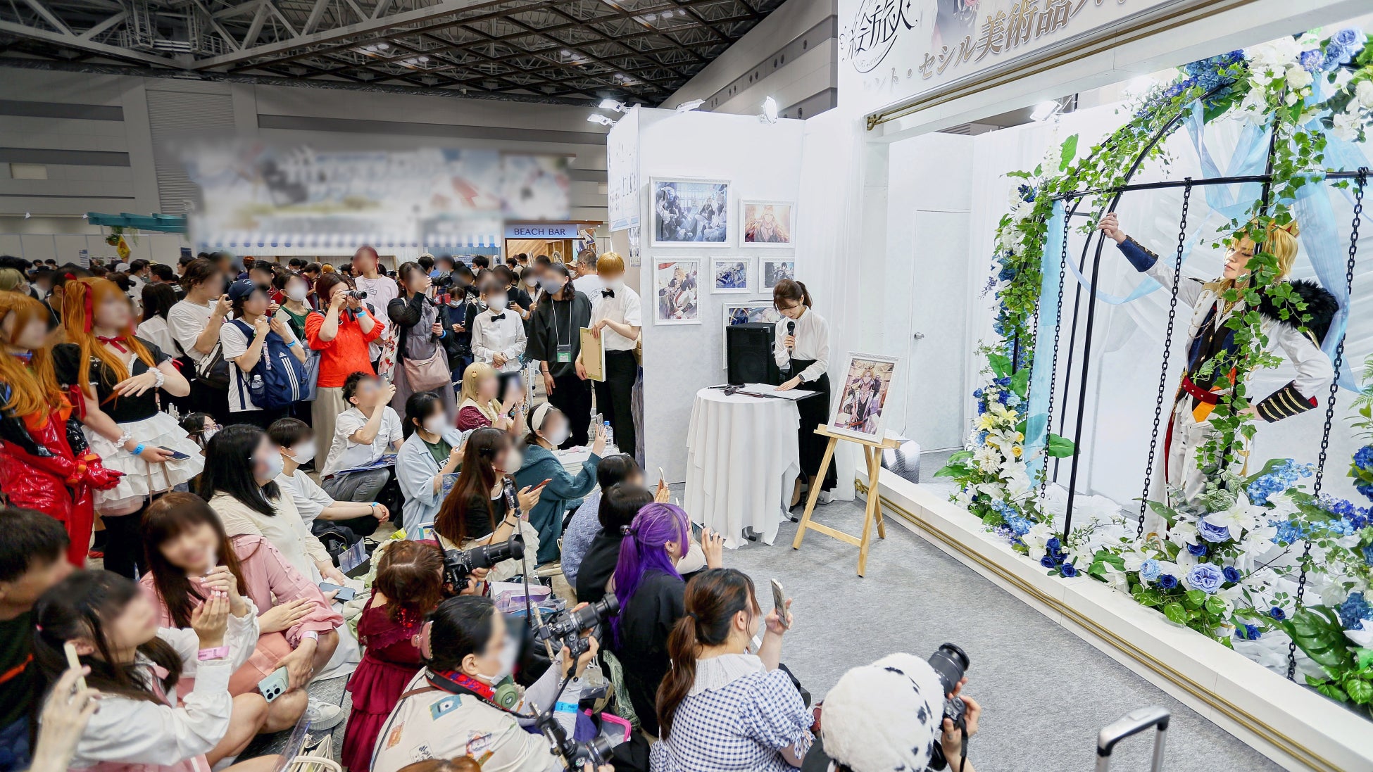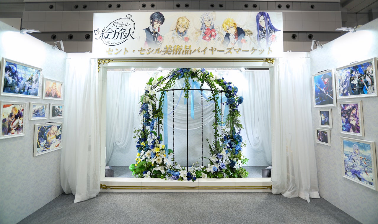イエセイ大陸をテーマにブースをデザインし、さらに時空の絵旅人のイエセイ大陸に存在する重要キーアイテムである「鳥かご」やバイヤーズマーケットの数々の「美術品」もリアルに再現しました。